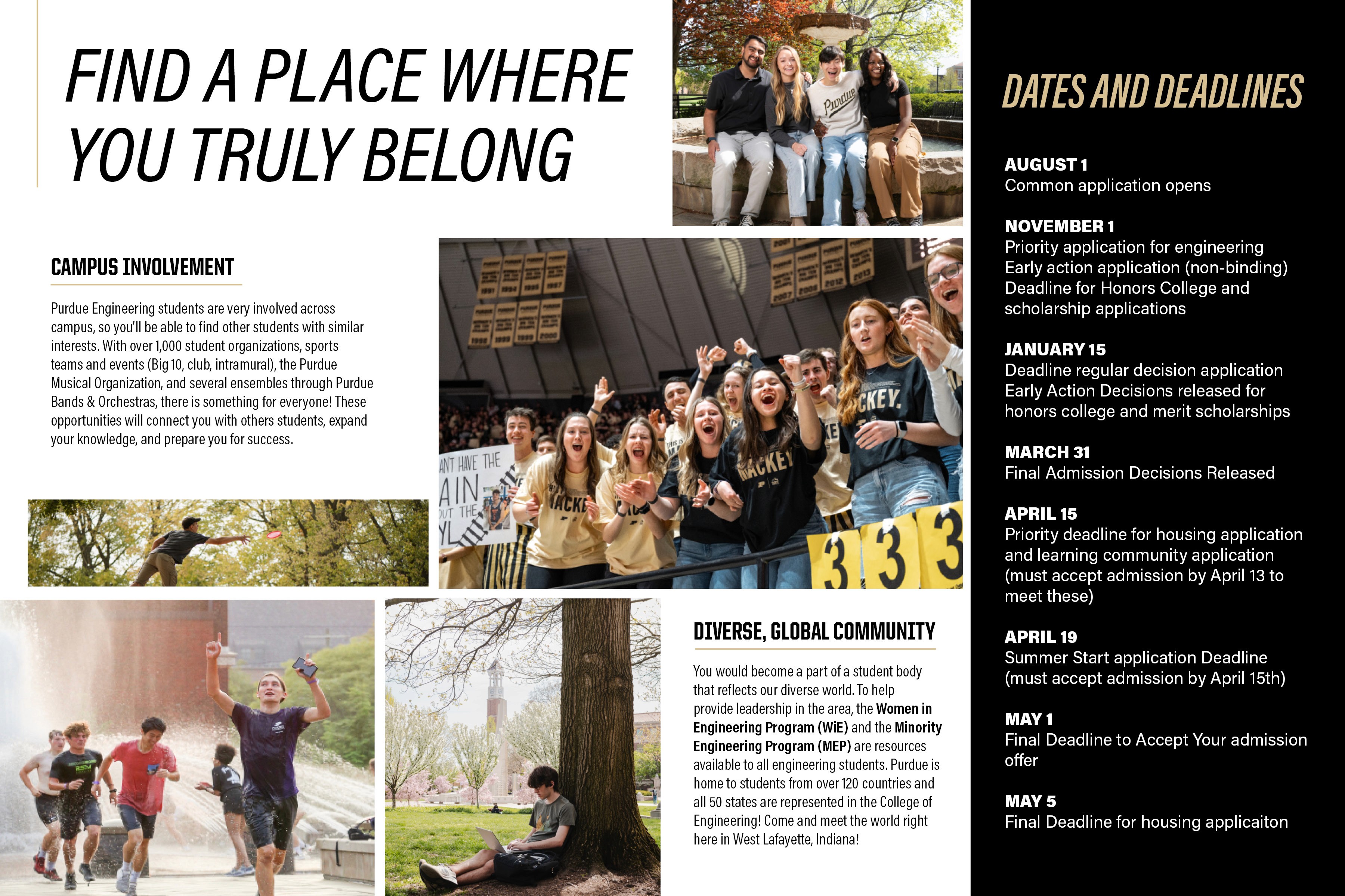 For the Purdue Office of Future Engineering, I contributed to the design of four spreads for an informational booklet distributed to prospective Purdue Engineering students. This project was an exciting opportunity to work within Purdue’s official branding guidelines and create content that reached thousands of individuals. I collaborated closely with members of the department to make strategic and creative design decisions, ensuring the final product aligned with both aesthetic and informational goals.